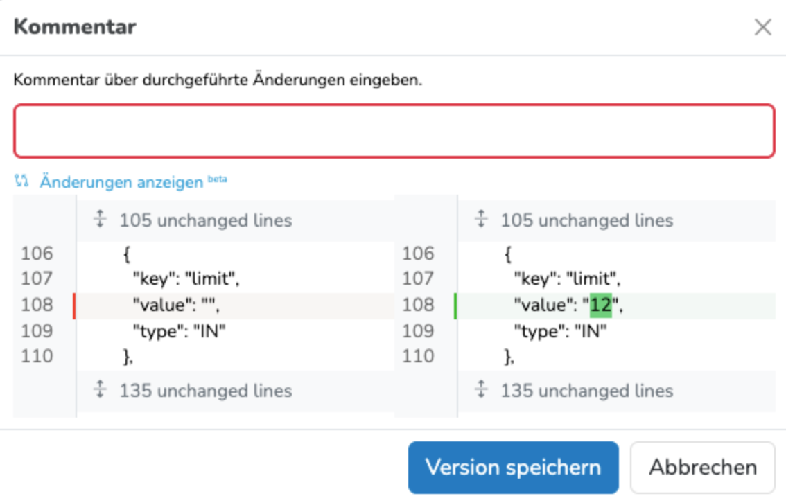 Beim speichern einer neuen Flow Version, werden die Änderungen im JSON angezeigt.