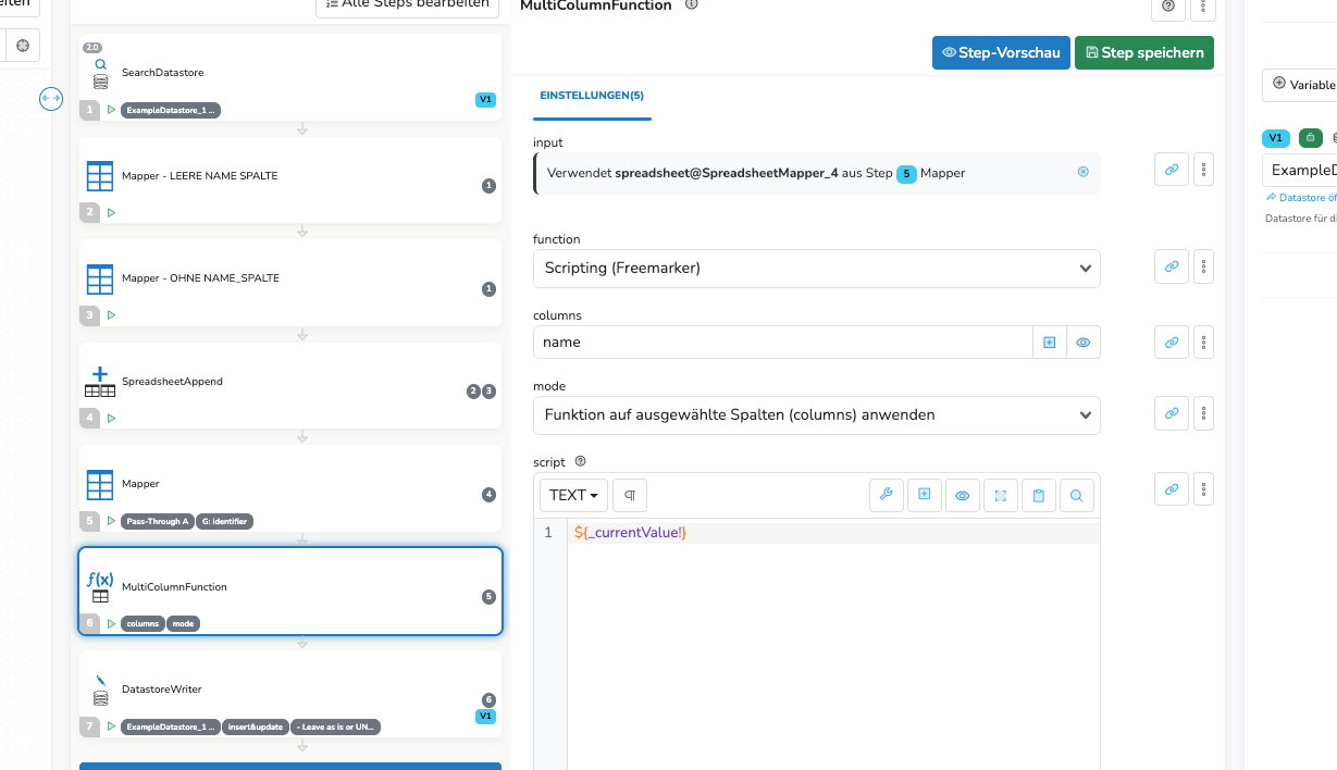 danke für die detaillierte Erklärung - dann gibts nochmal eine MultiColumnFunction vorm DS Writer, das passt für mich - muss man nur erst einmal verstehen, wie genau das alles “unter der Haube” abläuft