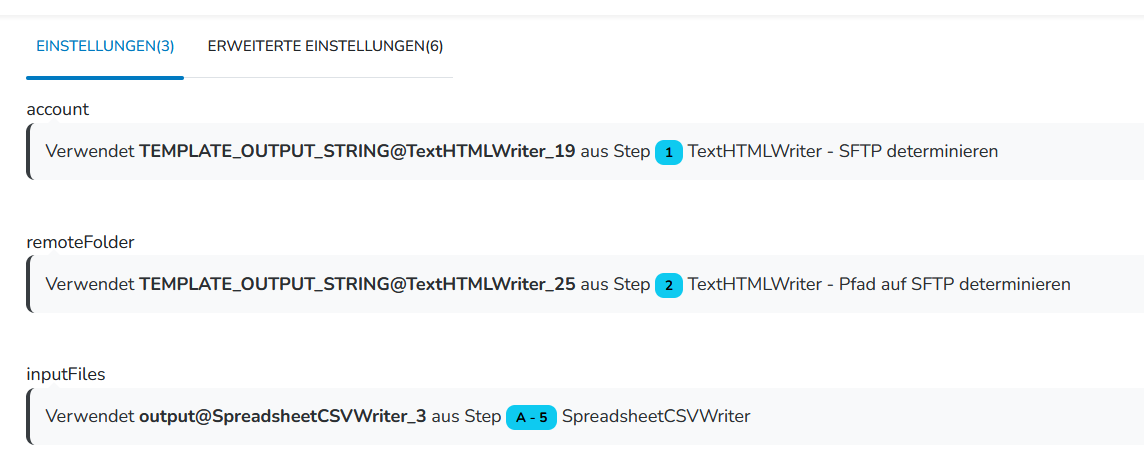seit dem Update gestern habe wir einen Fehler in einem unserer Flows beim FTPUpload-Step. In dem Schritt werden Account und Pfad dynamisch aus TextHTMLWritern übergeben.