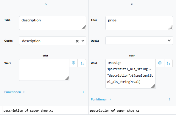 ich habe in Shopware-Orderdaten oft den Fall, daß es keine extra Angaben zur Lieferadresse gibt. In dem Fall würde ich gerne die Werte aus der Rechnungsadresse übernehmen. Um das nun nicht in jeder Spalte extra codieren zu müssen, dachte ich mir, es per Script zu lösen. Dabei soll erstmal der Spaltentitel erzeugt werden, aus dem im Leer-Fall der Wert geholt werden soll, anschließend soll er dann entweder einen vorhandenen Wert eintragen oder eben den aus der anderen Spalte holen. Das klappt so aber noch nicht, Beispiel: