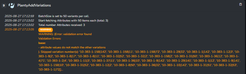 {"error":{"message":"validation error found"},"validation_errors":{"base":["attribute values do not match the other variations"]}}