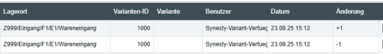 Ich will den Bestand einiger Varianten ändern. Vom aktuellen Bestand eins abziehen (quasi als Korrektur), und direkt danach wieder aufbuchen.