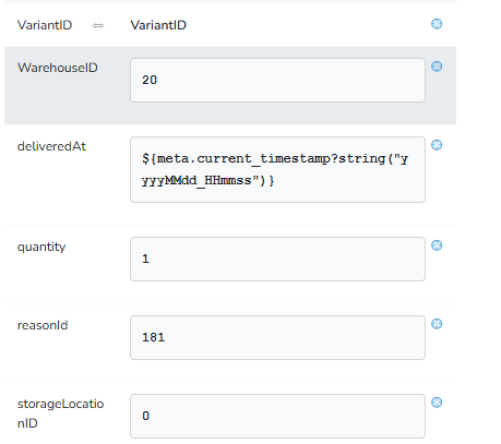 bei dem Step kannst du bei der storageLocationID eine 0 für die default Location angeben. Ist das eine Option für dich? Die reasonId ist nicht Pflicht.