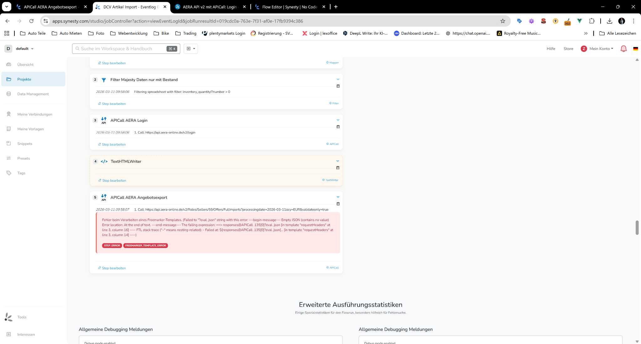 Falls jemand ein funktionierendes Beispiel in Synesty für AERA V2 Seller API hat, wäre das extrem hilfreich.