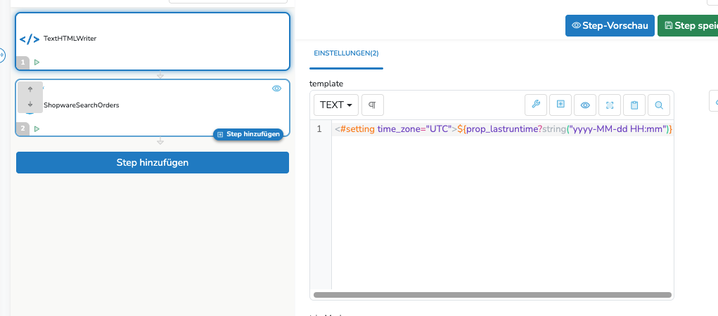 ich wollte jetzt gerade den Abruf von Shopware Bestellungen im ShopwareSearchOrders Step mit der prop_lastruntime Variable testen. Dabei ist mir aufgefallen, dass es da ein Problem gibt. Und zwar speichert Shopware 6 den Zeitstempel in der Datenbank in UTC und zeigt sie im Backend in der lokalen Zeitzone an.