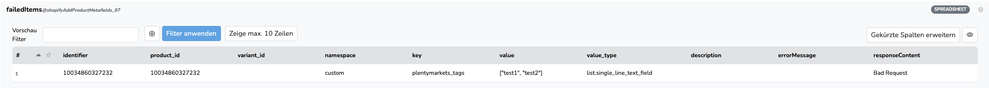 Bei einem Step mit value_type “list.single_line_text_field” kommt es auf einmal zum Problem.