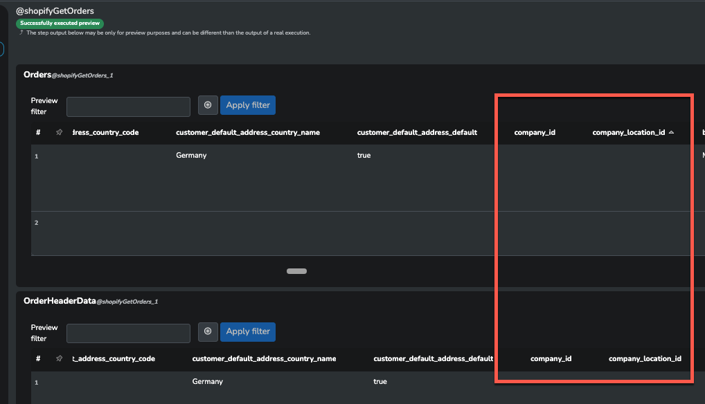 wenn man in Shopify über eine B2B Company eine Bestellung aufgibt, gibt es folgende Info (order.company) in der Order Json: